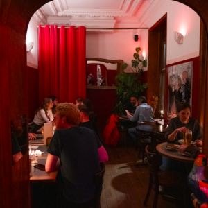 In deze volstrekt anti-gastronomische setting blijft hij verrassen, deze keer met een vegetarische variatie op de klassieke steak au poivre, waarbij het vlees vervangen werd door een dikke snede knolselder, geflankeerd door fijngehakte paddenstoelen en beluga-linzen (€ 17). Ook met vis toont de chef zijn talent: twee kleine rode ponen met knisperend vel bovenop ajoblanco*, met fijngesnipperde wortel en vadouvanolie (€ 14). Verse ingrediënten, levendige expressie, boeiende variaties van smaken en texturen: dit culinaire niveau verwacht je niet in deze kroegsfeer. Het nagerecht houdt dat niveau aan: een beignet van appel, opgesmukt met wat dulce de leche (karamelpasta) en verfrist door hooi-ijs (€ 9).