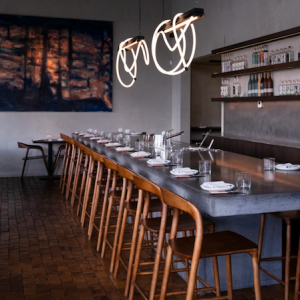 De lange glanzende toog in de eetzaal doet mij denken aan Pujol, waar Olvera ook zo'n toog heeft waar hij gastronomische taco's serveert. Hij maakt er een erezaak van om Mexicaans streetfood op te tillen naar een hoger niveau: benieuwd of dat hier ook lukt.